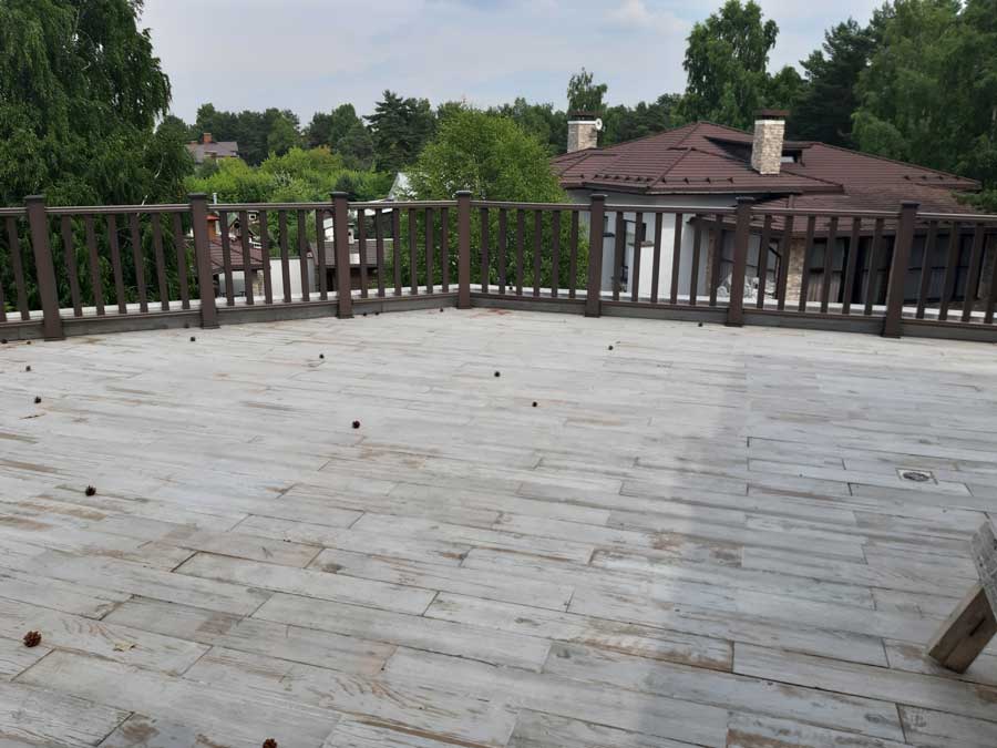Произвели поставку и шеф-монтаж ограждений из ДПК Holzhof цвета венге (темный шоколад) на открытых площадках на 2-м и 3-м этажах частного дома.